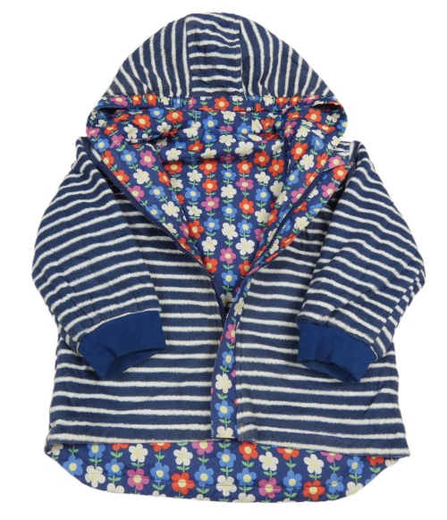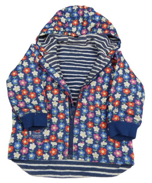 • Tmavomodrá šušťáková obojstranná bunda s kvietkami a kapucňou Jojo Maman Bébé
