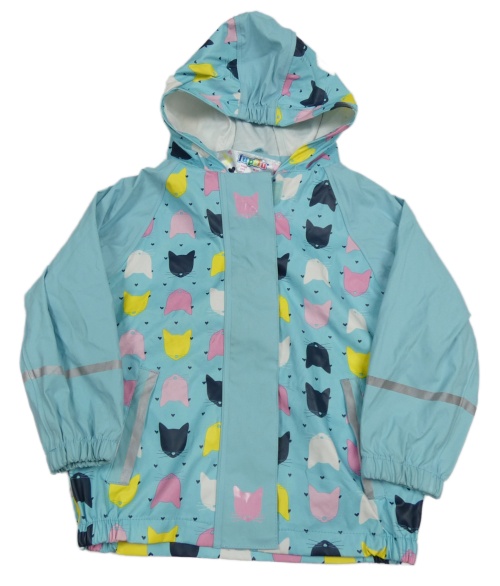 Tyrkysová nepromokavá bunda s mačkami a kapucňou Lupilu