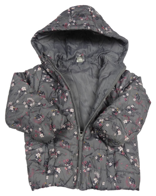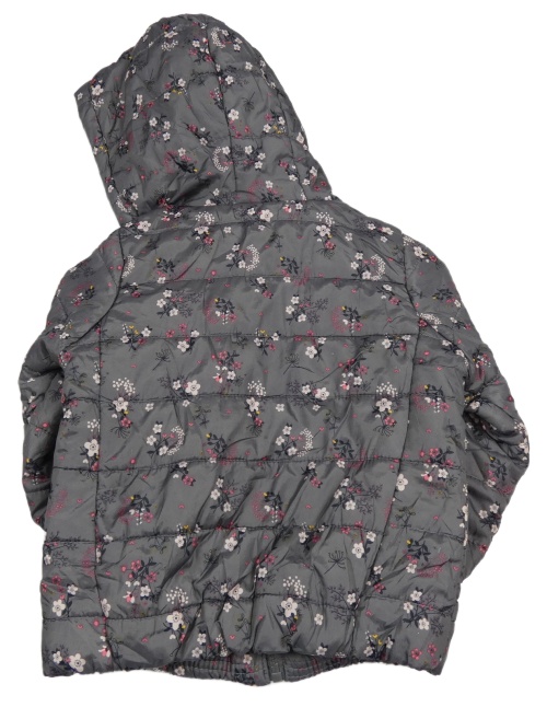 Antracitová kvetovaná šušťáková zateplená bunda s kapucňou Little kids