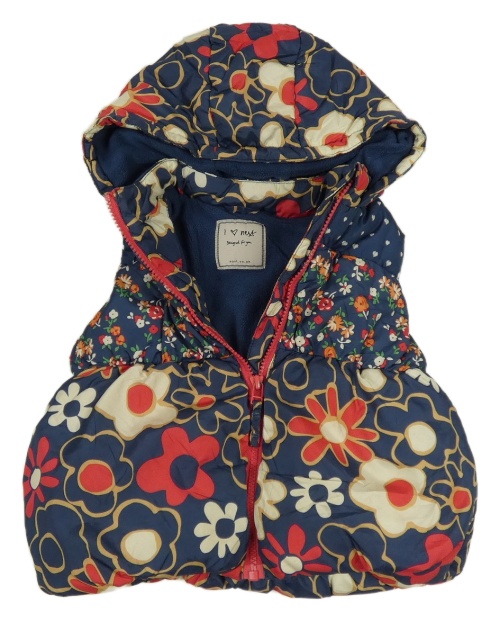 Tmavomodrá kvetovaná šušťáková zateplená vesta s kapucňou Next