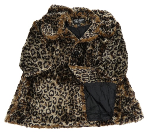 Béžovo-hnedý kožušinový podšitý kabát s leopardím vzorom