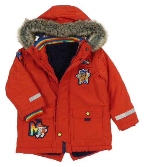 Červená šušťáková zimná bunda s kapucňou s kožešinou - Tlapková patrola George