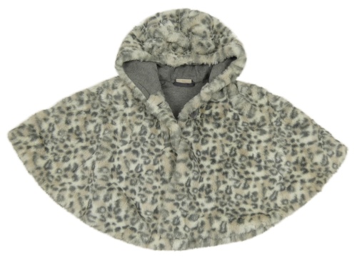 • Smetanovo-sivo-béžové vzorované kožušinové podšité pončo s kapucňou s uškami Next