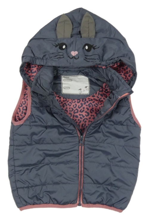 Tmavosivá šušťáková zateplená vesta s -kapucí králik