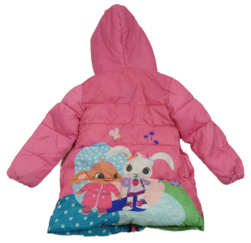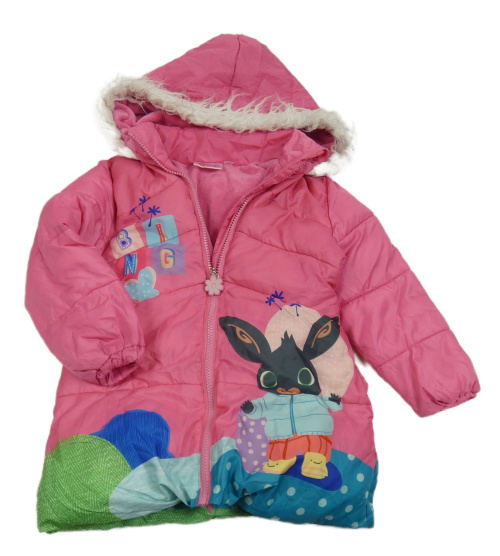 Ružový prešívaný šušťákový zimný kabát s Bingem a kapucňou s kožešinou