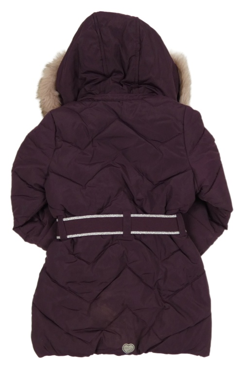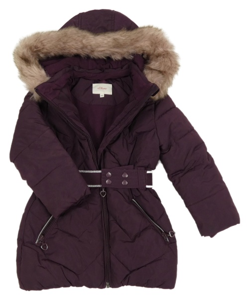 • Tmavovínový prešívaný šušťákový zimný kabát s odopínacíá kapucňou s kožešinou a opaskom S. Oliver