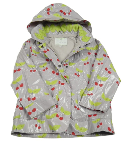 Sivá nepromokavá jarná bunda s trešněmi a kapucňou Vertbaudet