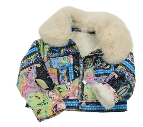 Farebná vzorovaná šušťáková zateplená crop bunda s kožušinovým golierikom SHEIN