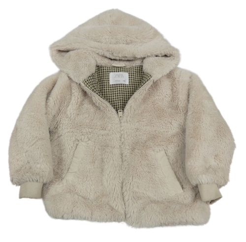 Smotanová kožušinová podšitá bunda s kapucňou Zara