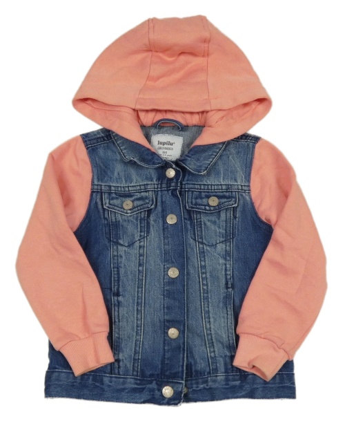 Modrá rifľová bunda s ružovymi teplákovymi rukávy a kapucňou Lupilu