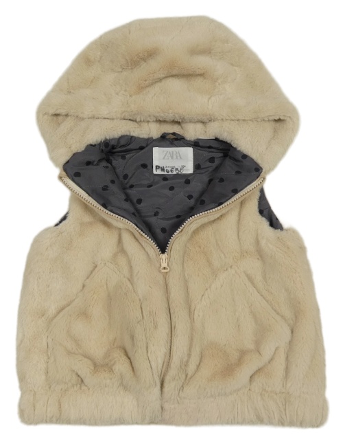 Béžová kožušinová zateplená vesta s kapucňou Zara