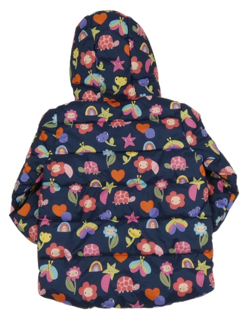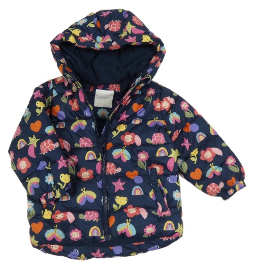 Tmavomodrá šušťáková prešívaná zimná bunda s kvietkami a kapucňou Next