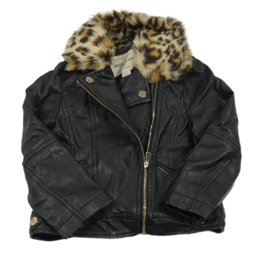Čierna koženková bunda s kožušinovým odepínacím golierom River Island