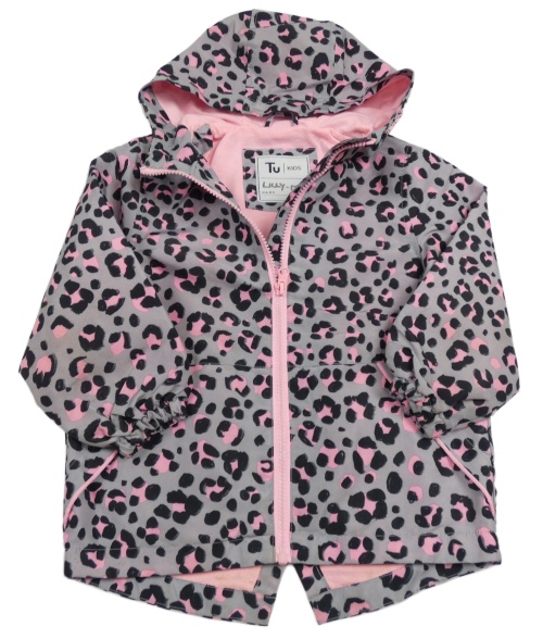 Sivo-čierno-ružová vzorovaná šušťáková jesenná bunda s kapucňou Tu