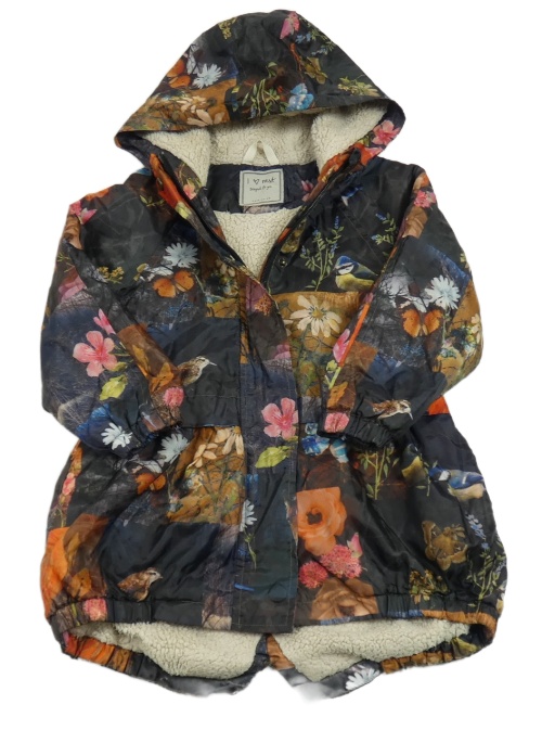 Čierna šušťáková jarná květovan,á parka s vtáčky a kapucňou Next