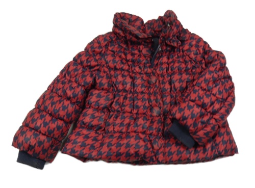 Tmavomodro-červená vzorovaná šušťáková zimná bunda