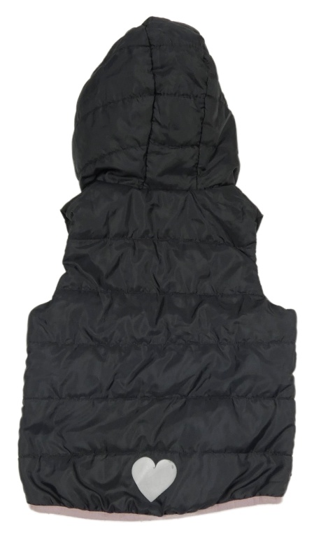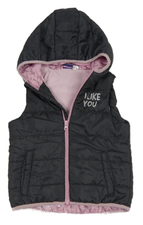 Tmavošedo-ružová šušťáková zateplená vesta s nápisom a kapucňou Lupilu