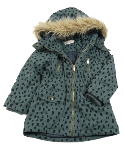 Šedomodrá vzorovaná šušťáková zateplená parka s kapucňou s kožešinou H&M