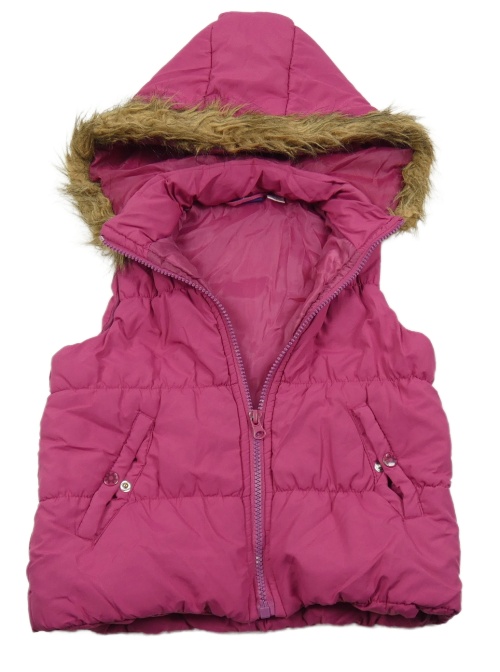 Tmavoružová šušťáková zateplená vesta s kapucňou s kožešinou Lupilu