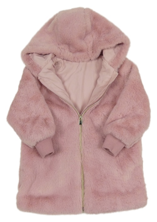 Svetloružový kožušinový podšitý kabát s kapucňou St. Bernard