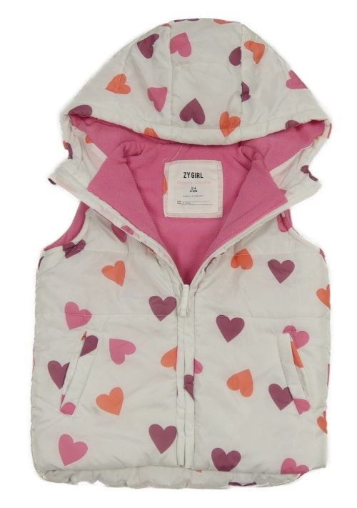Biela prešívaná šušťáková zateplená vesta so srdiečkami a kapucňou ZY