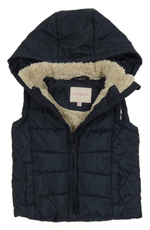 Tmavomodrá prešívaná šušťáková zateplená vesta so srdiečkom
