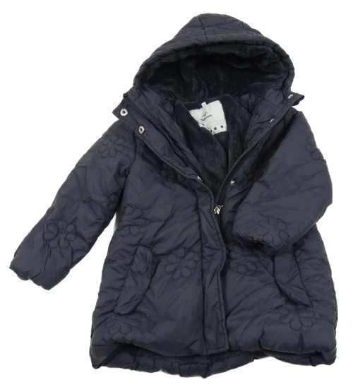 Tmavomodrá kvetinová šušťáková zimná bunda s kapucňou Topolino
