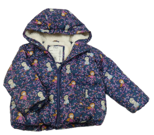 Tmavomodrá kvetovaná šušťáková zimná bunda s Elsou a Annou a kapucňou M&S