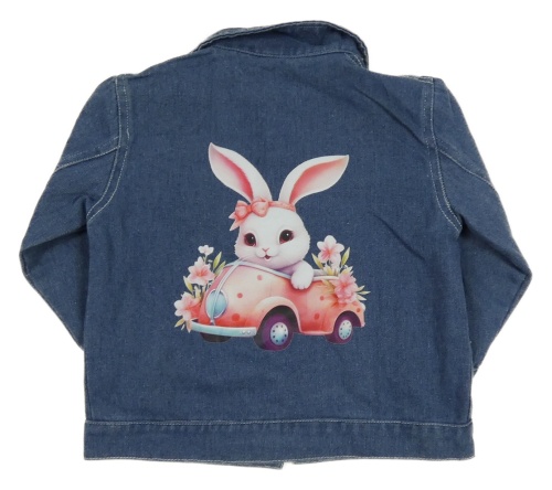 Modrá rifľová bunda s vyšúchaním a zajačikom a autom