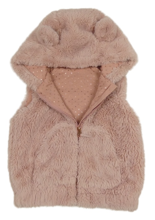 Staroružová kožušinová podšitá vesta s kapucňou Nutmeg