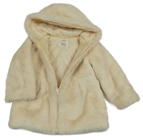 Smotanový kožušinový zateplený kabát s kapucňou Matalan