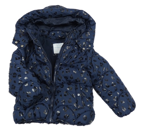 Tmavomodrá vzorovaná prešívaná šušťáková zimná bunda s kapucňou PRIMARK