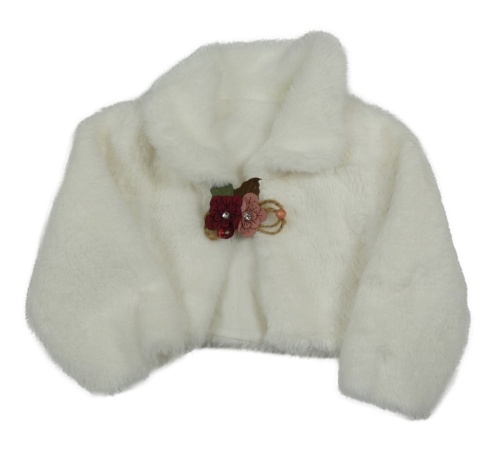 Bílý kožešinový crop kabátek s kvietkami