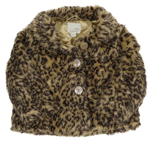 Tmavohnědo-béžový vzorovaný kožušinový podšitý kabát s golierikom Next