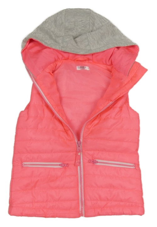 Neónově ružová prešívaná šušťáková zateplená vesta s kapucňou