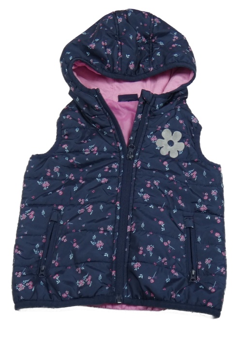 Tmavomodro-ružová kvetovaná šušťáková zateplená vesta s kapucňou Impidimpi