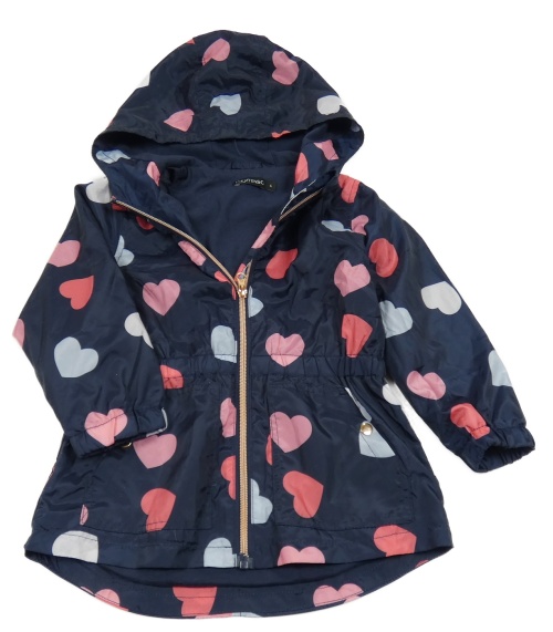 Tmavomodrá šušťáková jarná parka so srdiečkami a kapucňou