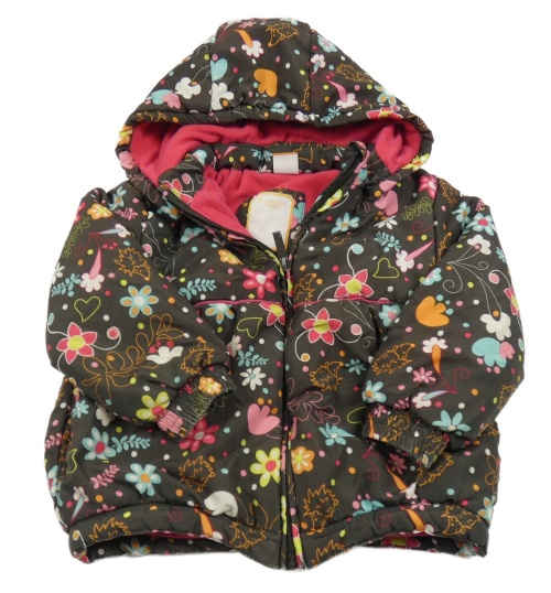 Hnedo-farebná kvetovaná šušťáková zimná bunda s kapucňou