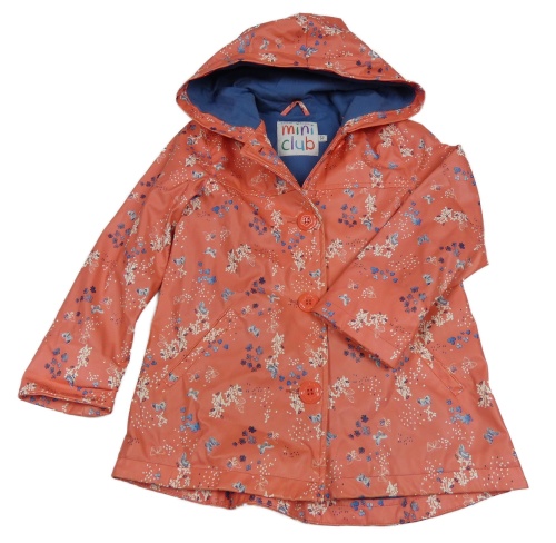 Korálový nepromokavý jarný kabát s motýlikmi a kvietkami a kapucňou miniclub