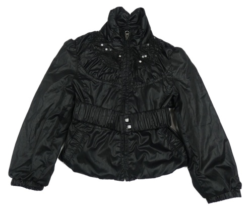 Čierna jarná crop šušťáková bunda s flitrami a opaskom