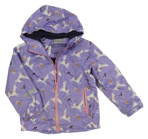 Lila šušťáková jarná bunda s lamami a kapucňou Impidimpi