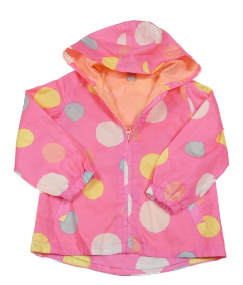 Neónově ružovo-farebná bodkovaná á šušťáková jarná bunda s kapucňou Tu