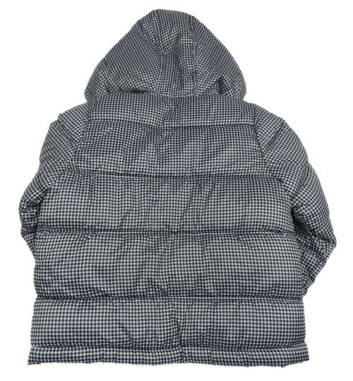 Čierno-biela vzorovaná prešívaná šušťáková zimná bunda s kapucňou KIABI