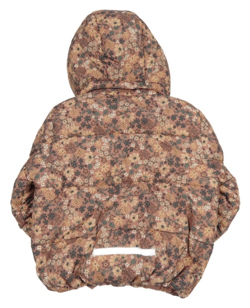 Staroružová šušťáková prešívaná zimná bunda s kvietkami a kapucňou H&M