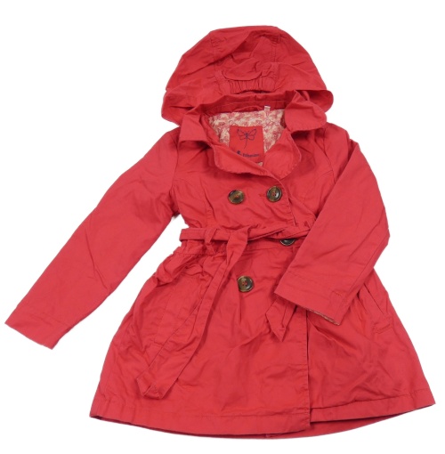 Jahodový plátenný kabát s golierikom a kapucňou a opaskom C&A