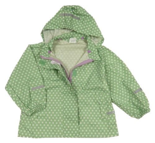 • Zelená šušťáková nepromokavá bunda s hviezdičkami a odopínacíá kapucňou Papagino