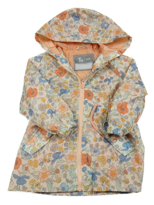 Smetanovo-farebná kvetovaná šušťáková jarná parka s kapucňou Tu