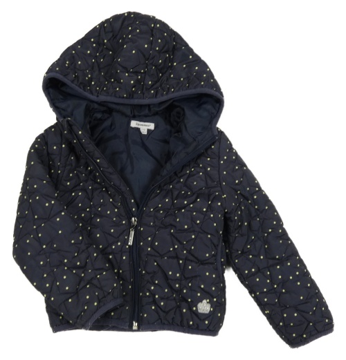 Tmavomodrá bodkovaná á šušťáková prešívaná zateplená bunda s kapucňou
