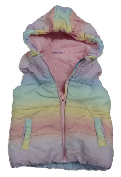 Farebná pruhovaná šušťáková zateplená vesta s kapucňou Dunnes