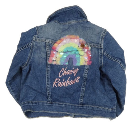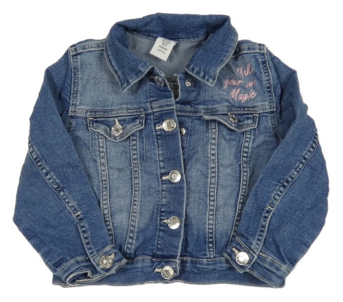 Modrá rifľová bunda s dúhou a nápismi H&M